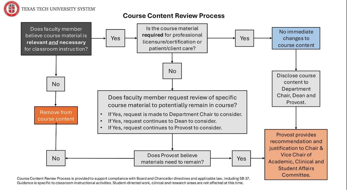 This morning, both the Chronicle and Inside Higher Ed had stories about the new guidelines at Texas Tech to clarify how “controversial topics” should be addressed. The Chronicle shared the TTU flowchart.